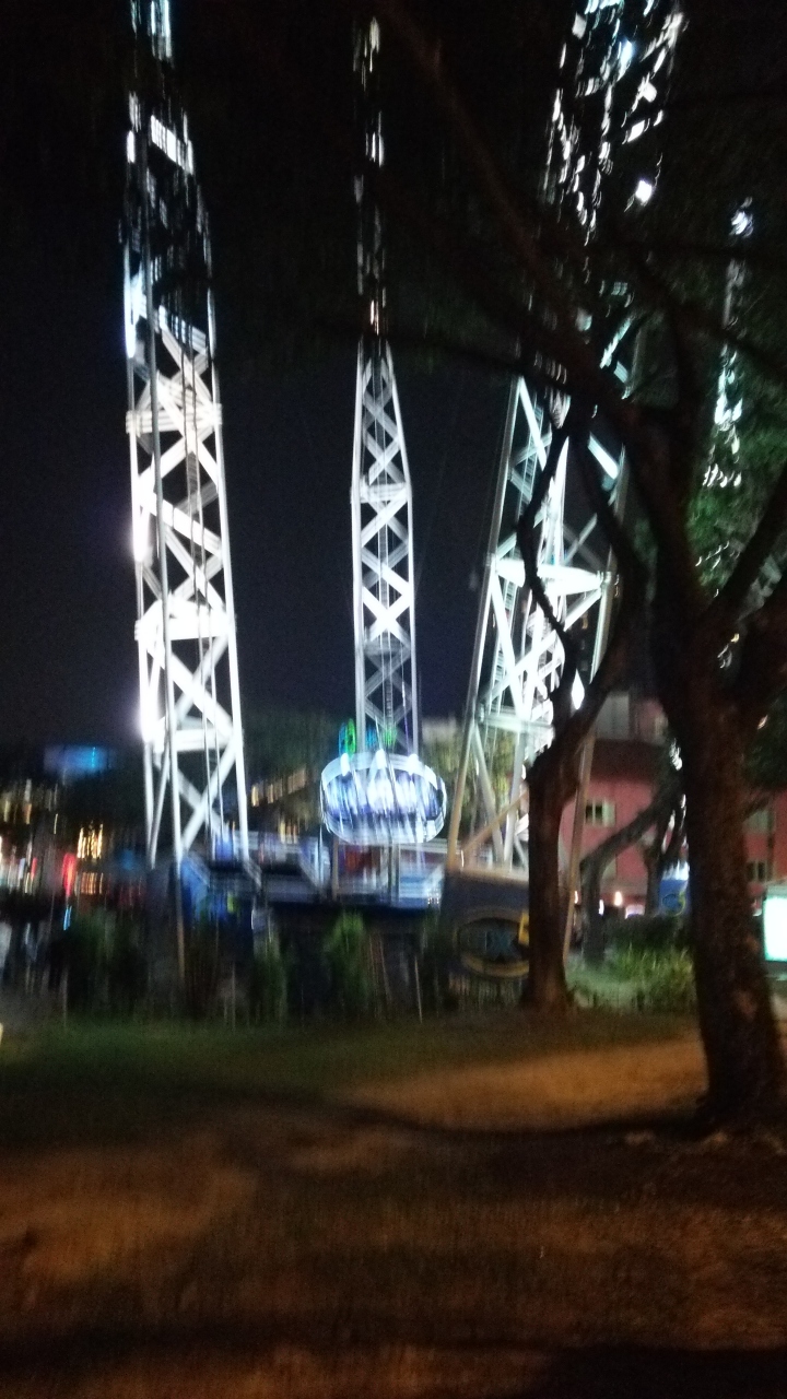 シンガポールの観光地クラークキーにある逆バンジーの遊戯です。遠くから歩いて行くと釣り挙げるクレーンが見えてきます。夜は明るく見えていますがあまりやっている人がいませんでした。ドーンと飛ばされる浮遊感は楽しいですね。値段が少し高い気がします。