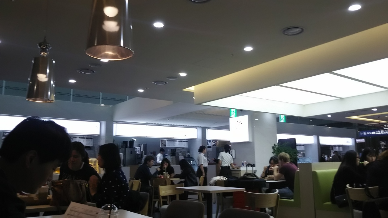 仁川空港で待ち時間があったのですが、スムージー2,500ウォンをいただき、時間つぶしをしていました。フードコートのような雰囲気もありますが、座席の種類もいくつかあり、ソファーのようなゆったりしている椅子などもあったので、1時間やそれ以上座っていても苦痛になりません。空港の中ということもあり、ほとんどの客が時間つぶしに来ているような感じでした。