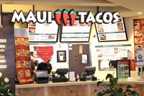 ロイヤルハワイアンセンターのフードコートにある『マウイタコス』に行って来ました。主人は、フィッシュタコ、私はチキンブリトーをオーダーしました。美味しいけれど、ブリートーがあまりにボリューミーで、食べているうちに飽きてしまいギブアップしてしまいました。軽く食べるならタコの方がお奨めです。