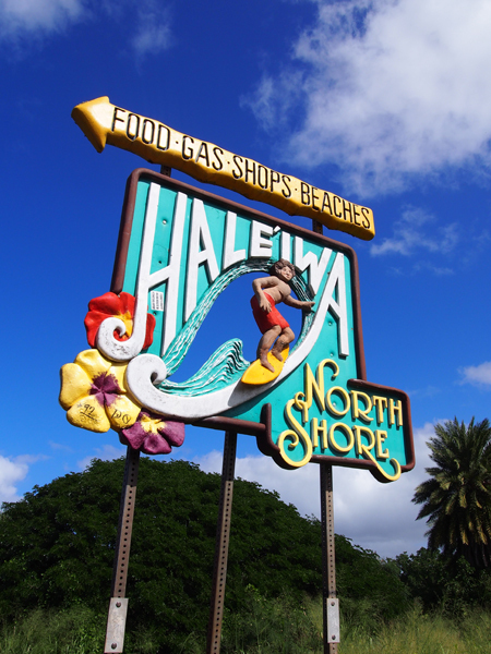 ワイキキから車で50分ぐらいです。ノースショアにあるハレイワタウンは古き良き、のんびりとしたゆるーい小さな街です。グルメタウンとしても有名で、ガーリック・シュリンプ屋さんやマツモト・シェイブアイスなど食べ歩きするのも楽しいです。