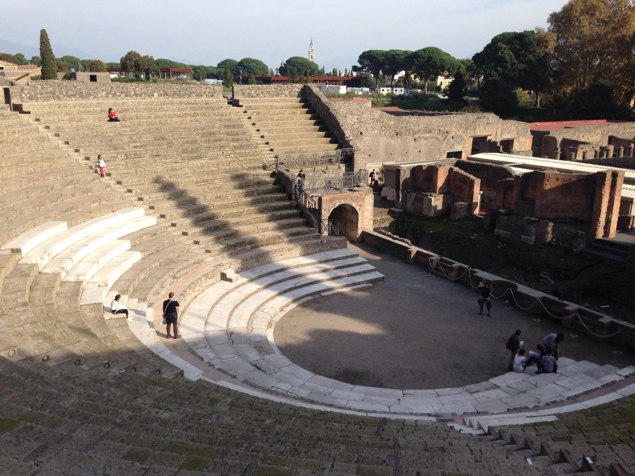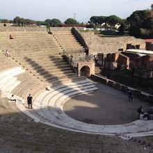 古代には、各種スポーツ、グラディエーターの闘いも行われたと言われる円形闘技場。石造りなので比較的保存状態もよく、観客席に座れば古代ポンペイ人の気分が味わえます。