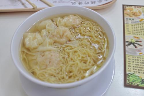 えびワンタン麵の名店「正斗麺粥専家」の空港支店に行って来ました。フードコートの中にあるんですが、ここだけ行列ができているので、すぐにわかりました。行列に並び、えびワンタン麵get。でも、ハッピーバレー本店と比べると、お高い!空港価格は仕方がないですね。えびワンタンは、底の方にあり、安定の美味しさ。