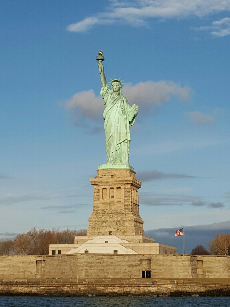 自由の女神は冬の朝日に照らされ、キラキラ輝いて見えました。