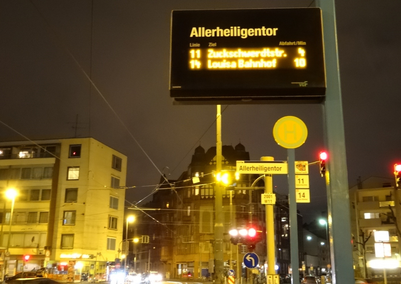 フランクフルト中央駅からトラムの11番から14番に乗り換え