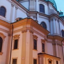グラーベン通りの少し奥にあるバロック様式の教会。緑色のドームが特徴です。