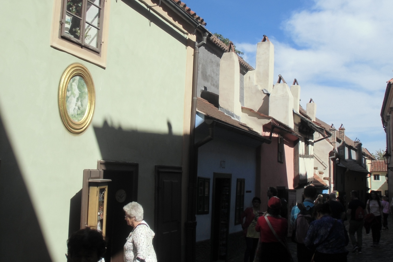 プラハ城を奥に進んでいくとたどり着けるこちらの通り。現代人には少し小さめのかわいらしいおうちが並んでいます。あのカフカの使ってた場所も有名で、観光客でにぎわっているのですぐにわかりました。二階は武器などの展示があります。