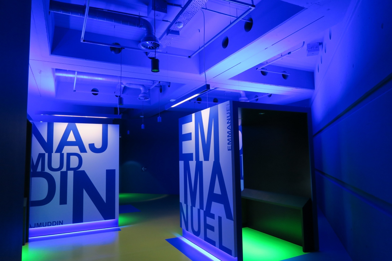内容は、各国の悲惨な経験をした人(子供の時に誘拐され銃を持たされ兵士にされたなど)の語りを聞き、思わず考えてしまう。 自動音声ガイドを持って、その展示ブースに行くと語りや解説が流れる仕組み。