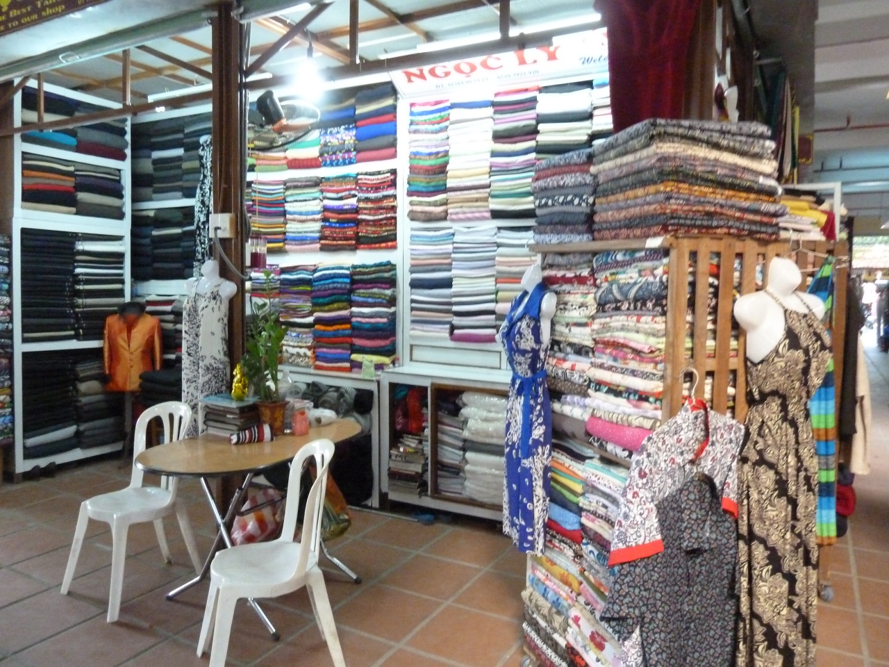 ホイアンの街中には、とにかく洋服屋さんが多い。中心地にあるのが、布の市場。豊富な布があるものの、それを買いたいとは思わなかった。裏には、ホイアン市場、目の前には、ホイクアン・ハイナムがある。布市場そのものの観光時間は、あまりかからない。