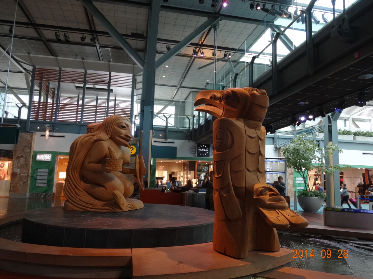 ラスベガスに行く際に往復乗り継ぎで利用しました。2階が到着フロア、3階が出発フロアになっています。アメリカへ行く場合は、この空港でアメリカの入国審査があります。まず入国審査を受け、荷物を一旦受け取り、再度預けるといった流れでした。乗り継ぎ時間が1時間ぐらいしかなく焦りましたが、空いていたのでスムースに進み間に合うことが出来ました。乗り継ぎ時間には少し余裕を持った方が良いかと思います。また、空港内はカナダらしく木のオブジェやトーテムポールが飾られ、池や水槽などもあり自然を感じる空間で心が安らげる空港でした。