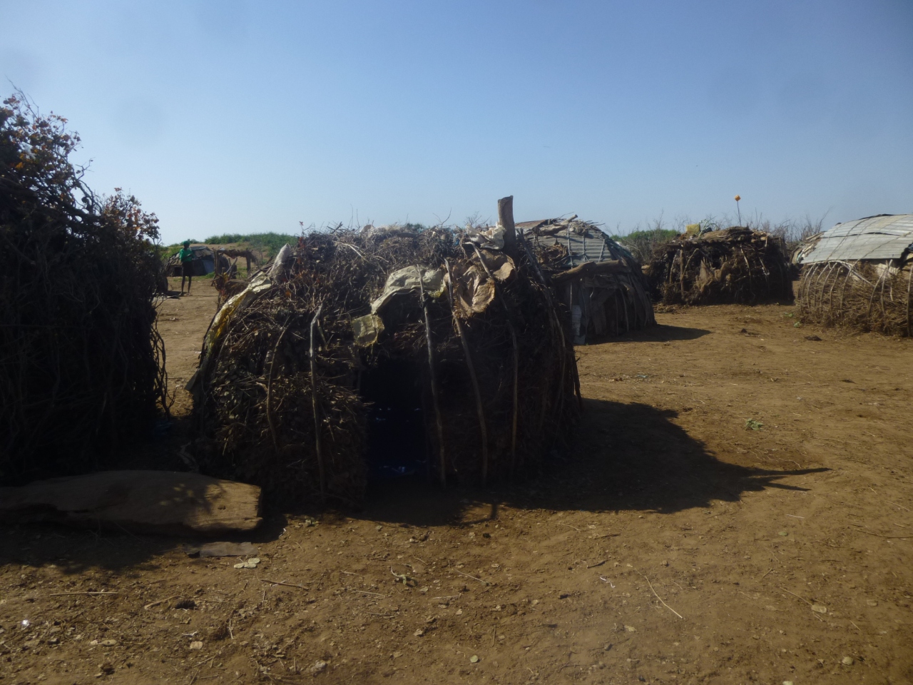 パスポートチェックを受けた後はオモ川を地元の舟で渡り、ダサネチ族の村に行きました。もちろんここでも写真撮影には一人5birr必要です。ただここの女性たちは人懐っこく、話をすると喜んで答えてくれました(彼女達は英語はあまりきませんでしたが、そこはフィーリングで話してくれました)。彼女達が全部で100birr払ってくれれば数人の写真を移し放題なのと踊りも披露してくれるとのことでしたので、(自分の)彼とであわせて100birr払いました。ダンスと歌を披露してくれて、途中から私も一緒に踊ったのでほんのちょっとですが彼女らと触れ合うことができて楽しかったです。印象に残る村の一つです。