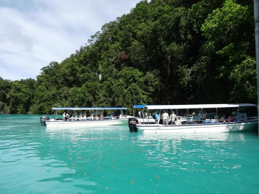 HISのジェリーフィッシュレイクツアーの途上で寄りました。海にとけ込んだ石灰岩が海底に溜まっている場所です。そのため海の色がエメラルドグリーンとなっていてユニークな景色であるのと、この石灰岩を使った泥パックが人気です。ですが、個人的にはパラオの中で見ると、他に素晴らしい場所が沢山あるので優先度は高くないのかな、と感じました。
