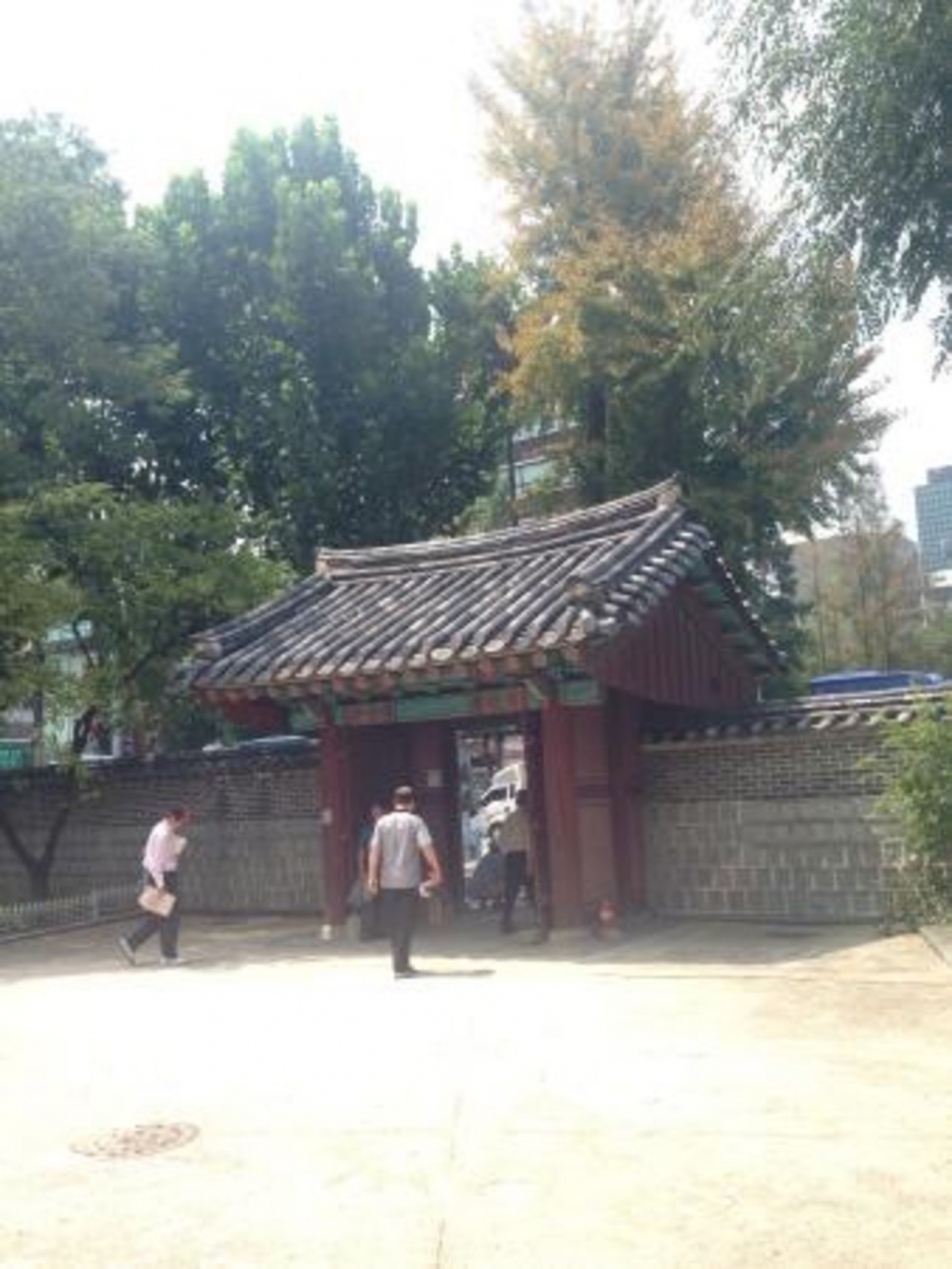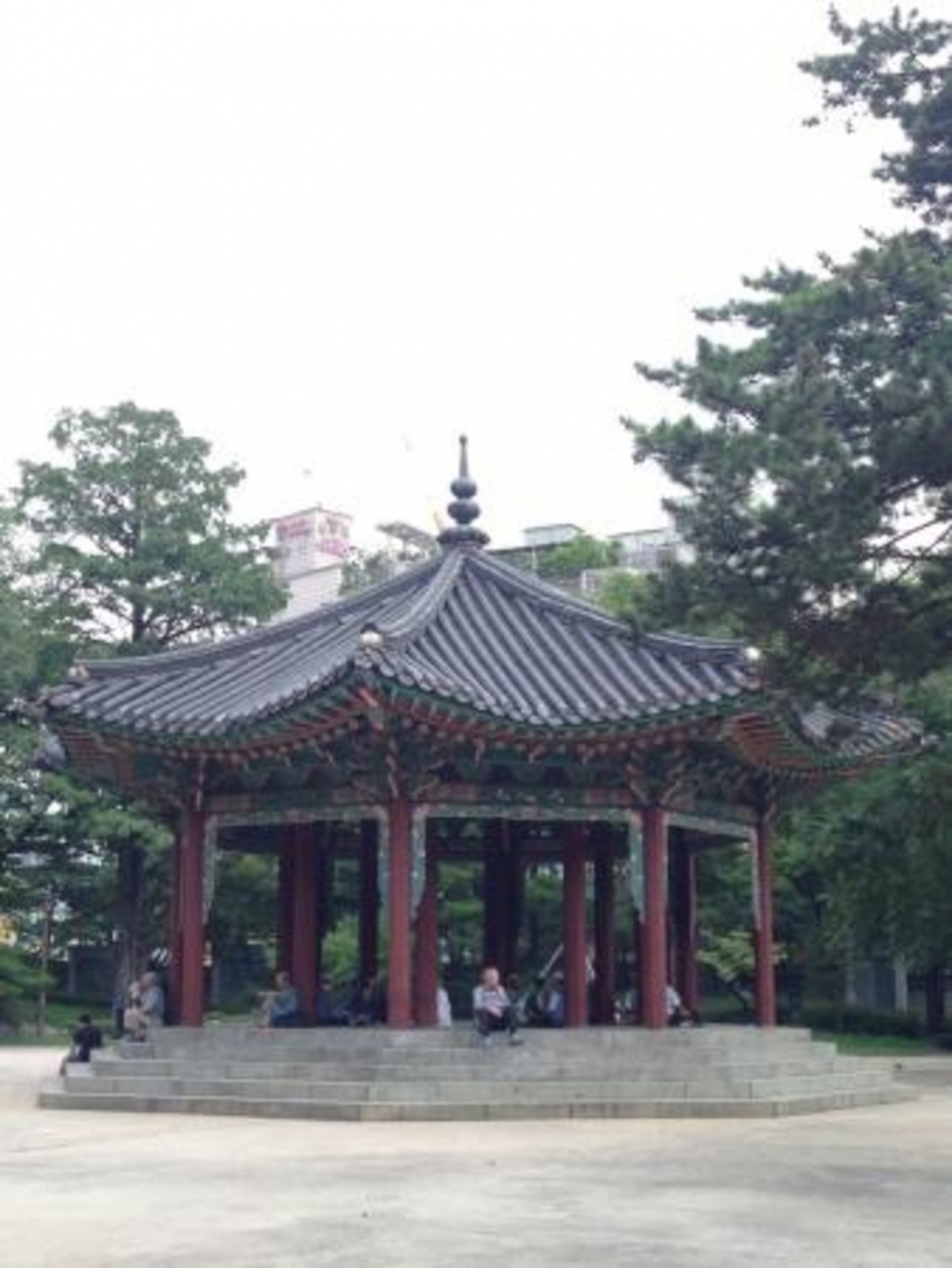 3.1独立運動発祥の地であり、公園周囲ではイカツイ音楽が流れて横断幕も掛けられています。