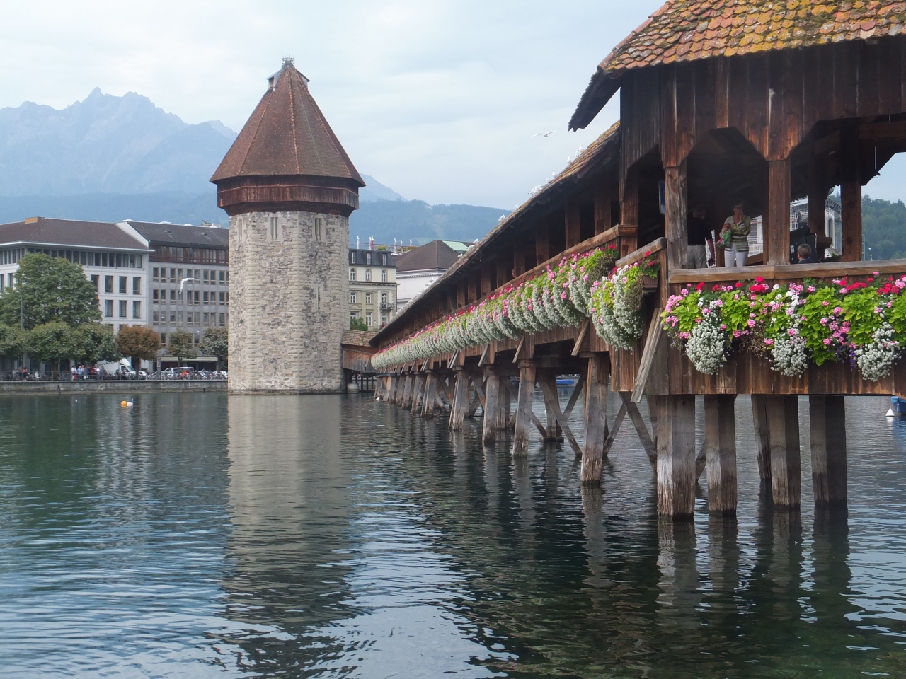 ルツェルンは2度目の訪問。もちろん、またカペル橋に行きました。カペル橋は木製の美しい橋ですが、ムーゼック城壁とシュプロイヤー橋とともに、外敵から町を守る砦の役割を果たしていたそうです。そういう歴史を思いながら、橋を楽しみました。