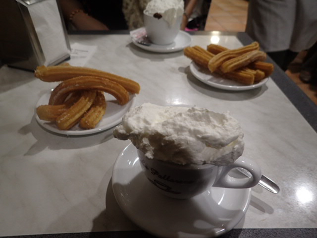 チュロスはそれとは別に頼まなあかんくて15cmくらいのんが5本で1.7ユーロ。両方頼んだら4.75ユーロ。