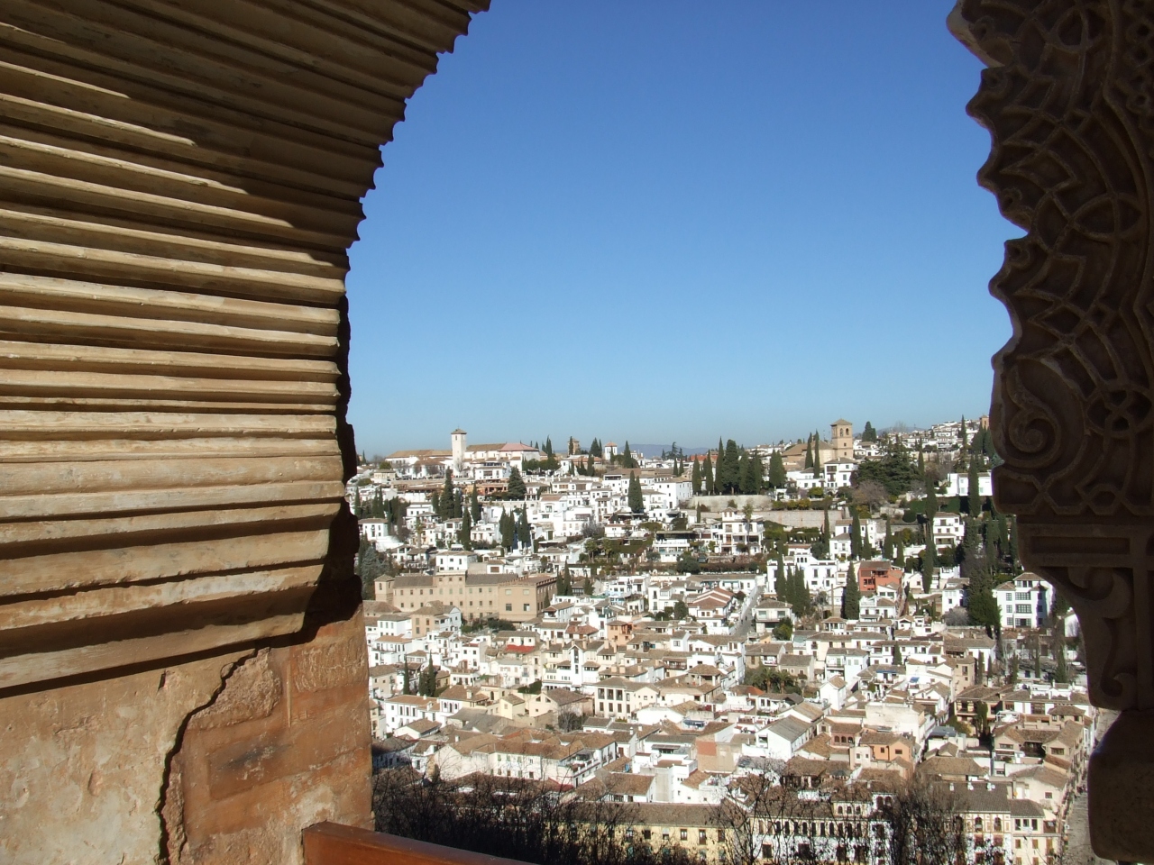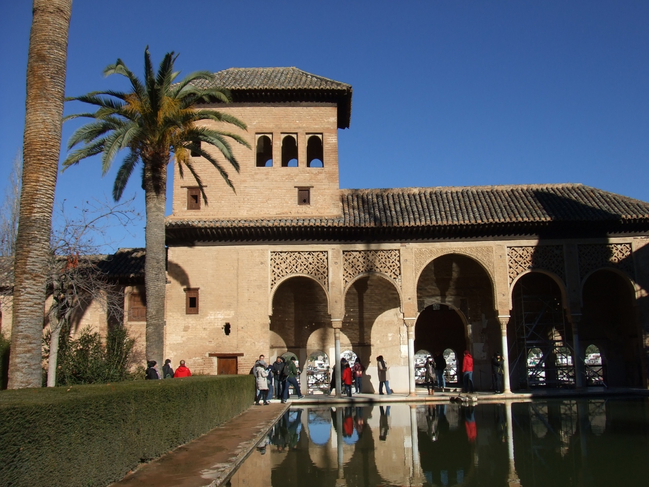 パルタル庭園の中にあり、貴婦人の塔と目の前の四角い池の水にうつる塔が見所。そして塔の柱廊から見るアルバイシン地区の素晴らしい眺めは最高。白い壁と茶色の屋根が無数に広がっていて、グラナダらしい美しい街並を見る事が出来ます。