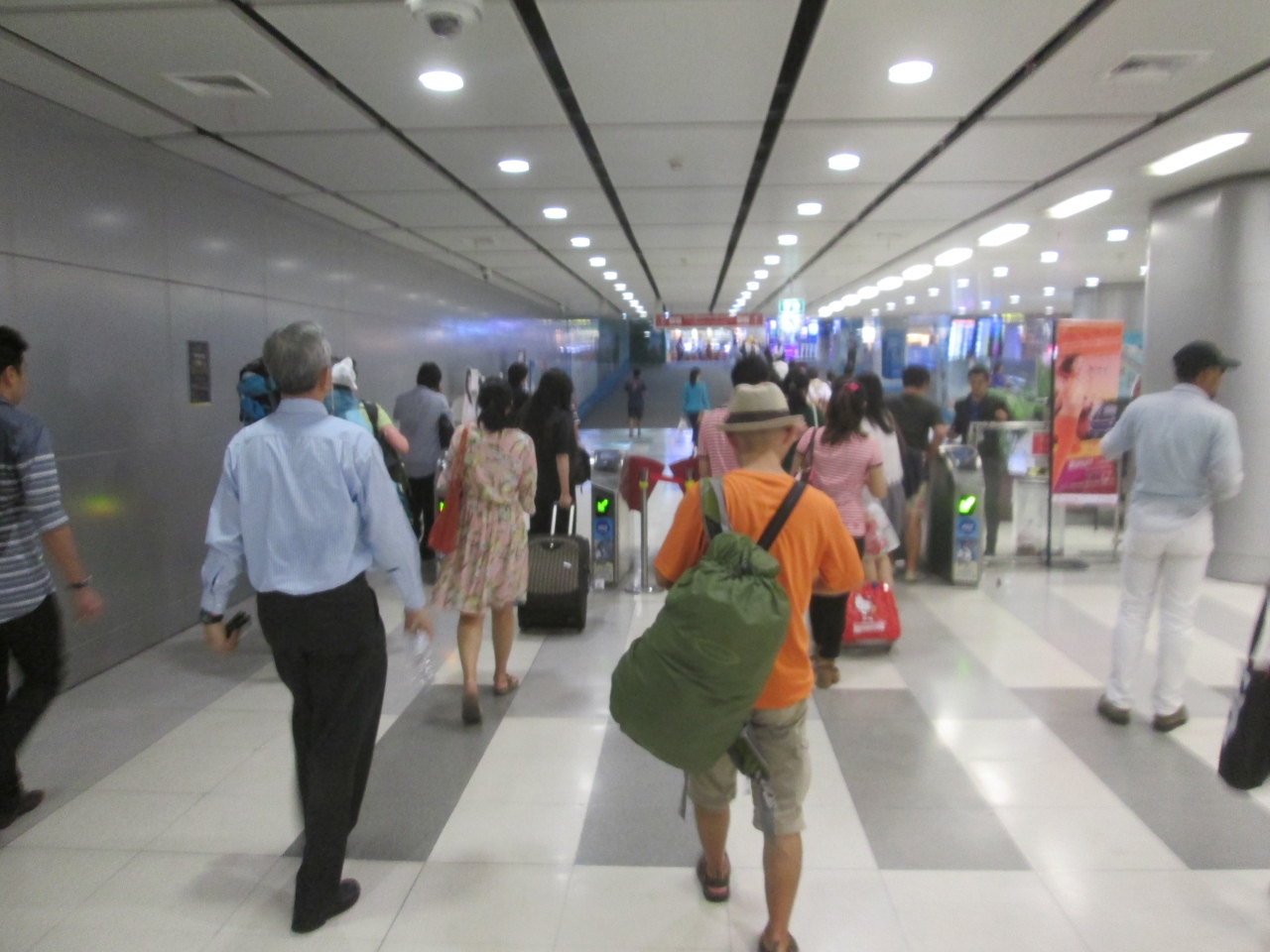 バンコク市内からスワンナプーム空港に到着すると旅行が終わったことを感じます。ほっとする場所でもあり、また、寂しくなる場所でもあります。地下の駅ホームからエスカレーターを上り、空港出発階に向かうときは実感します。