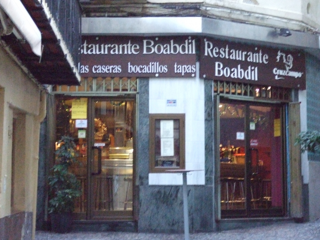 ボアブディルはナスル朝最後の王様の名前。この周辺にはバルが沢山ありますが、こじんまりしたこちらの店内は結構こんでました。なんとかカウンターに席を用意してもらい、サングリア1杯と無料のタパスを頂きました。確か2ユーロだったかな。さくっと食べて出て行く感じでした。