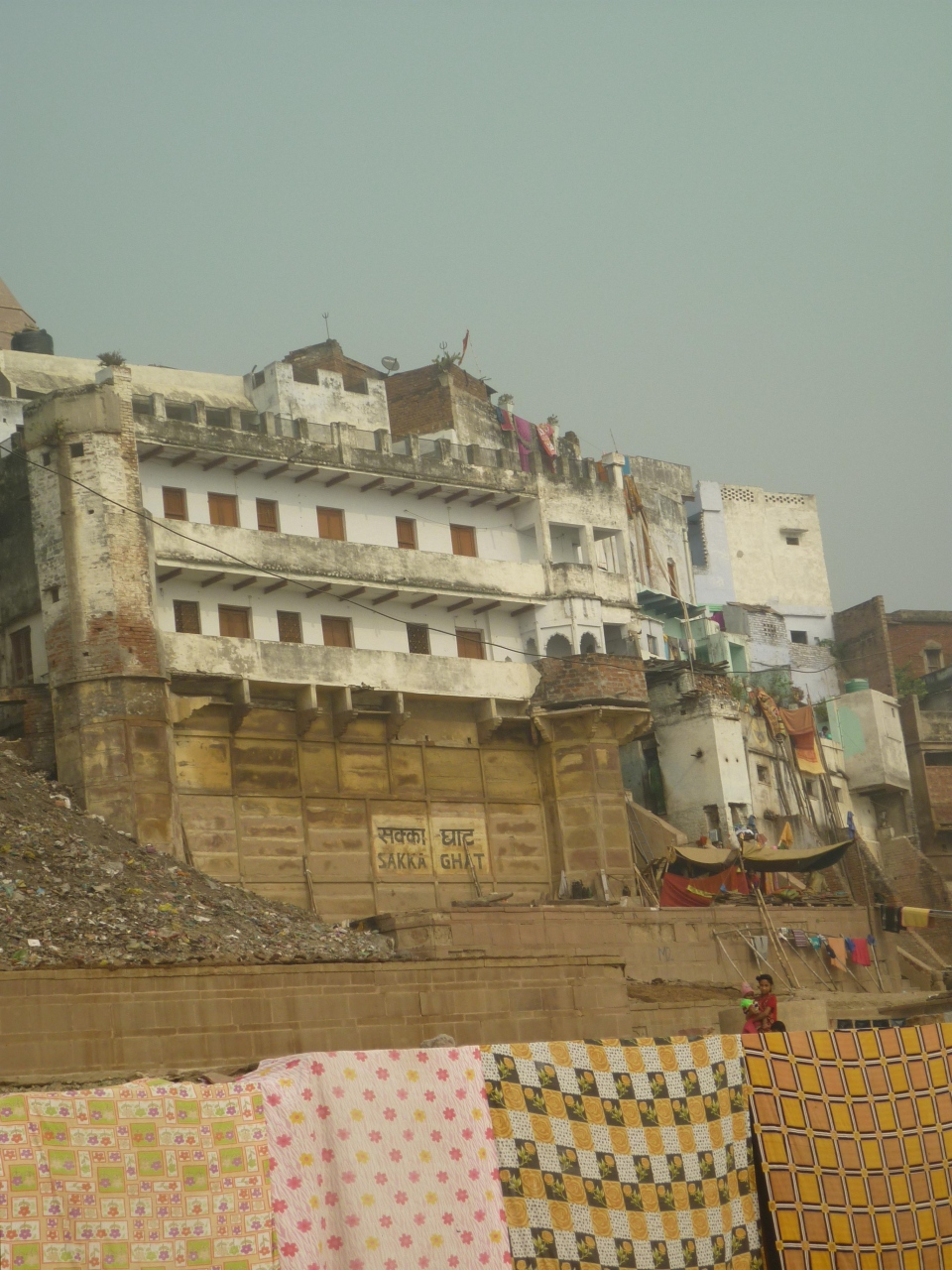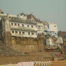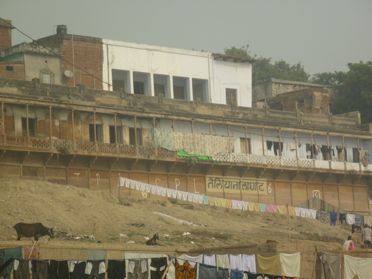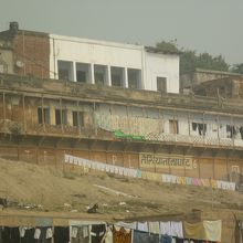 18世紀にはガートして使用された記録が残っており、聖なる沐浴場所もあったようです。現在は、洗濯業者が、ガンガーの水で洗濯し、ガートの上にひもを渡して干しています。