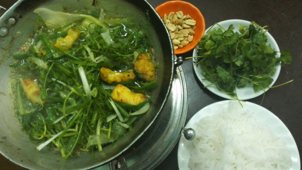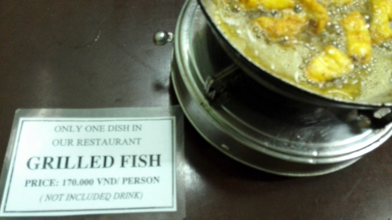 チャーカーの有名店で、メニューはチャーカー(2016年1月当時17万ドン)のみ。明朗会計で分かりやすいです。座ると同時に揚げ魚の鍋が出てきて、安い、早い、ウマイ!