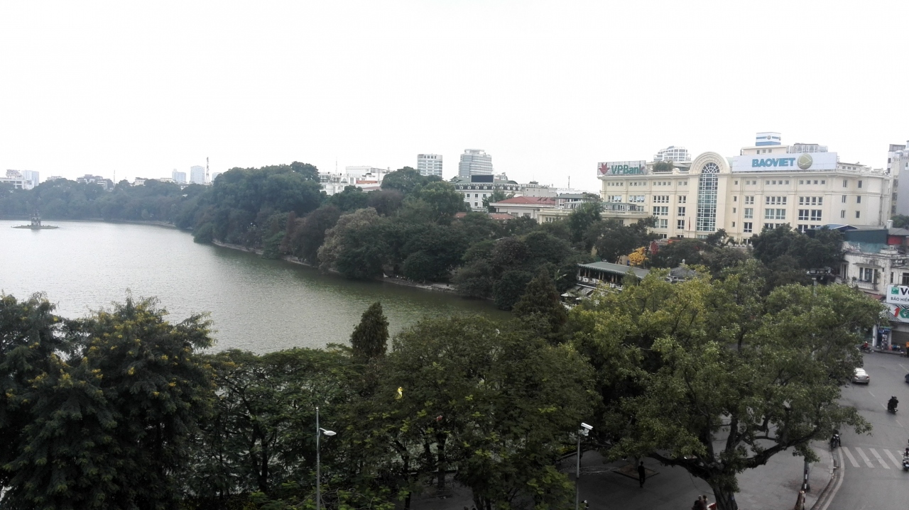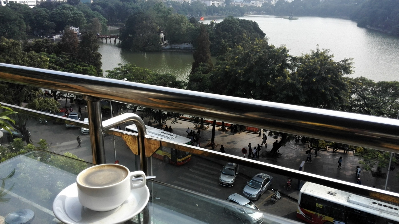 ホアンキエム湖の眺めを見るために行きました。下のフロアのハイランドコーヒーの方が安いけど、眺めは絶対にこっち!