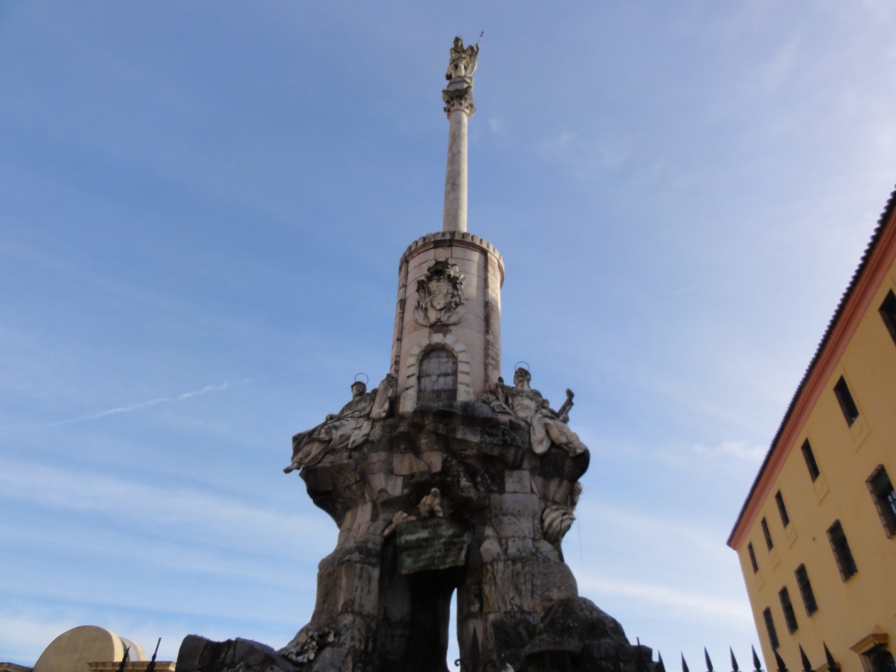 大天使ラファエルの像。ラファエルはコルドバの守護聖人。13世紀に流行ったペストから街を救ったことを記念して建てられたそうです。プエンテ門の近くにあり、早朝散歩していて見つけました。8世紀のフランス人彫刻家ミゲール・ベデルディギエルの作品。
