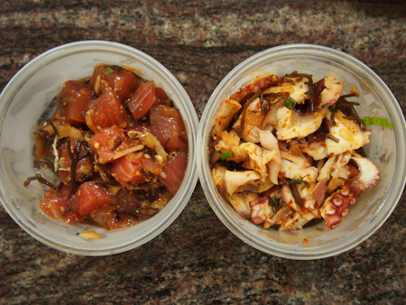 ワイキキから近くてポキが美味しいとの評判を聞いて伺いました。醤油アヒとハワイアンスタイルタコをオーダーしました。若干スパイシーではありますが、どれもフレッシュで胡麻油がアクセントになっていてとても美味しかったです。