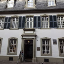 ドイツのトリアと云えばポルタ二グラと並び有名なカールマルクスの生家が観光スポットでした。生家へはポルタ二グラからは車の通らない広い歩道を歩きます。シメオン通りとフライッシュ通りを抜けると車道との交差点になり、そのまま進むとカールマルクス通りに入って右側三軒目が博物館となっている生家です。玄関の壁には肖像が貼り付けられています。