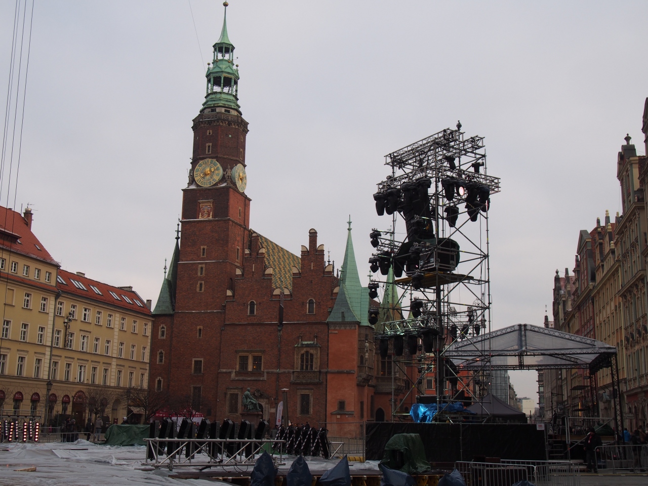 市庁舎の象徴である時計盤も塔の上のほうにあります。