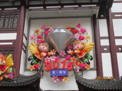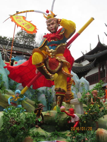 2016年の旧正月(春節)は2月8日、旧暦1月15日の「元宵節」(2月22日)に合わせ毎年行われる恒例行事「2016豫園新春民俗芸術灯会」は豫園中心広場で開催されます。今年は申年、中国で猿と言えば、中国四大明著の一つ、「西遊記」に出て来る孫悟空、「斉天大聖」を置いて他には有りません。上海の飾り付けはお金に関する物が多い、中国一の経済都市ならではです。今年は上海株式も乱高下しそう、儲かるように神様にお祈りしましょう。夜はライトアップを楽しむことが出来ますが寒いので暖かくしてご覧下さい。人混みでのスリが多いので鞄は身体の前に持ちましょう。