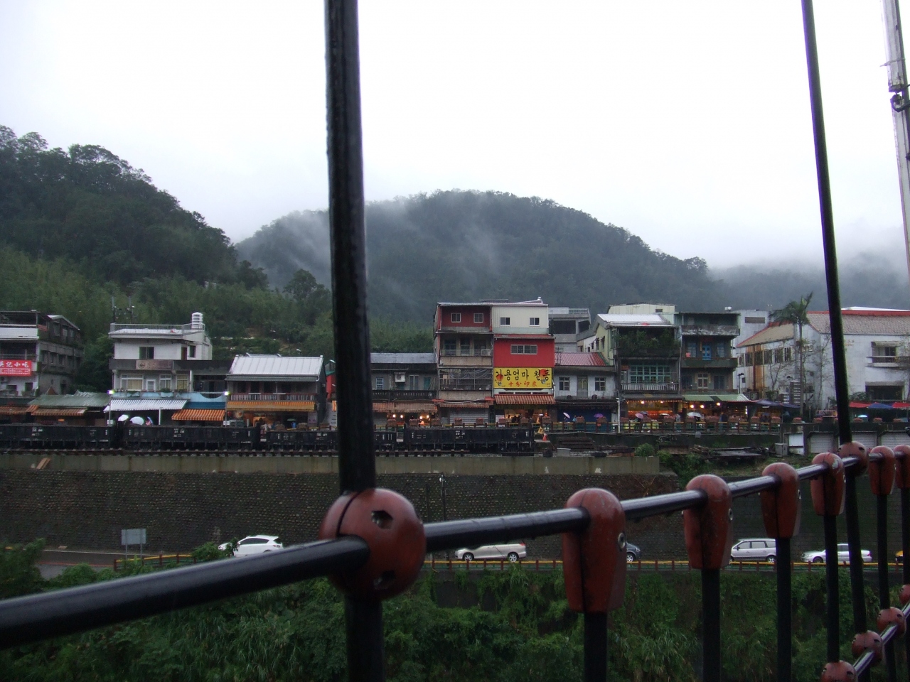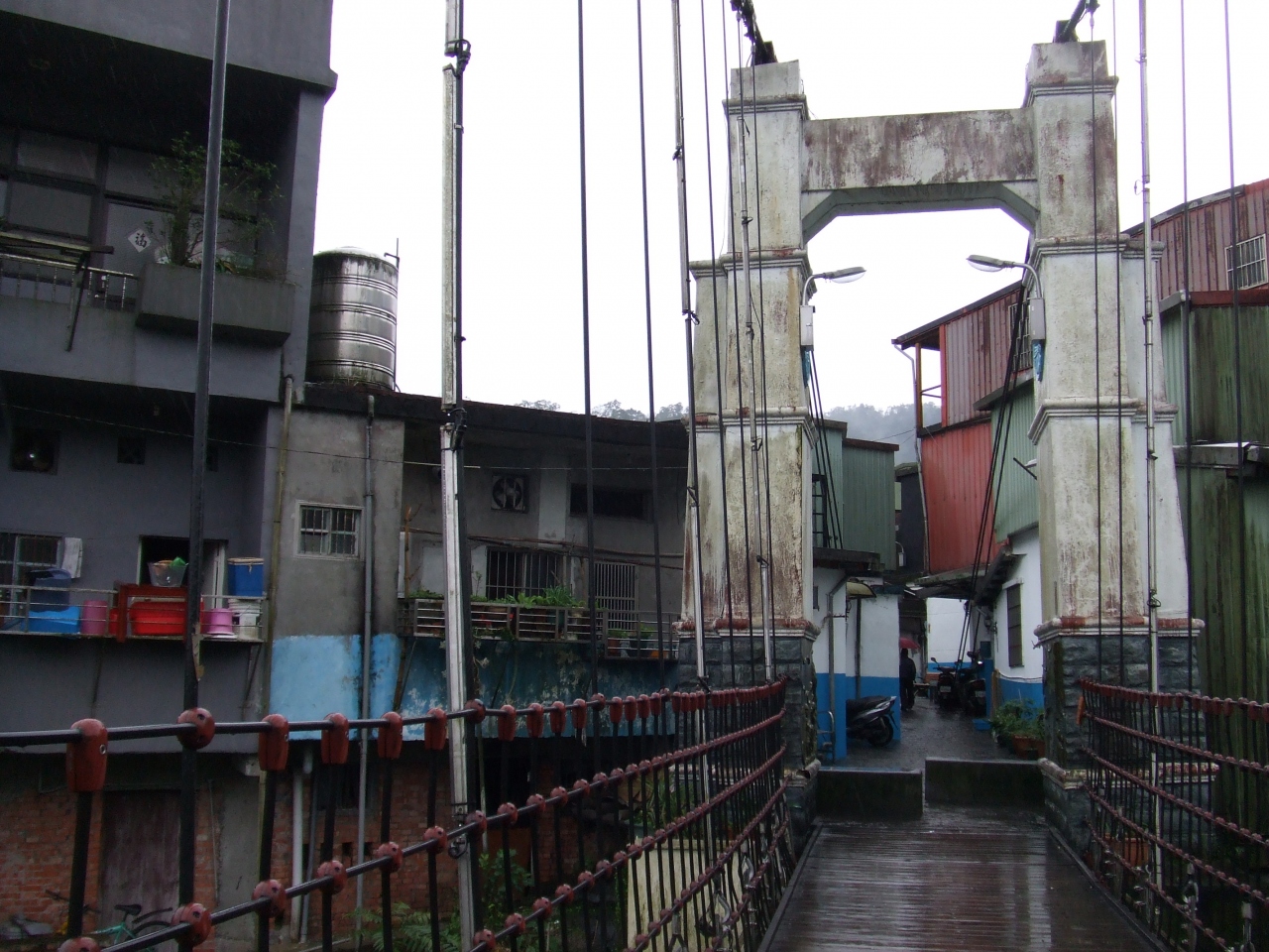 十分駅から歩いてすぐの基隆河にかかる大きな吊り橋。しっかりしているけど、それなりに揺れました。私達を含め、渡っている観光客が結構いるけど、古びた吊り橋の先には民家が並び、普通の人々の生活があるように感じました。