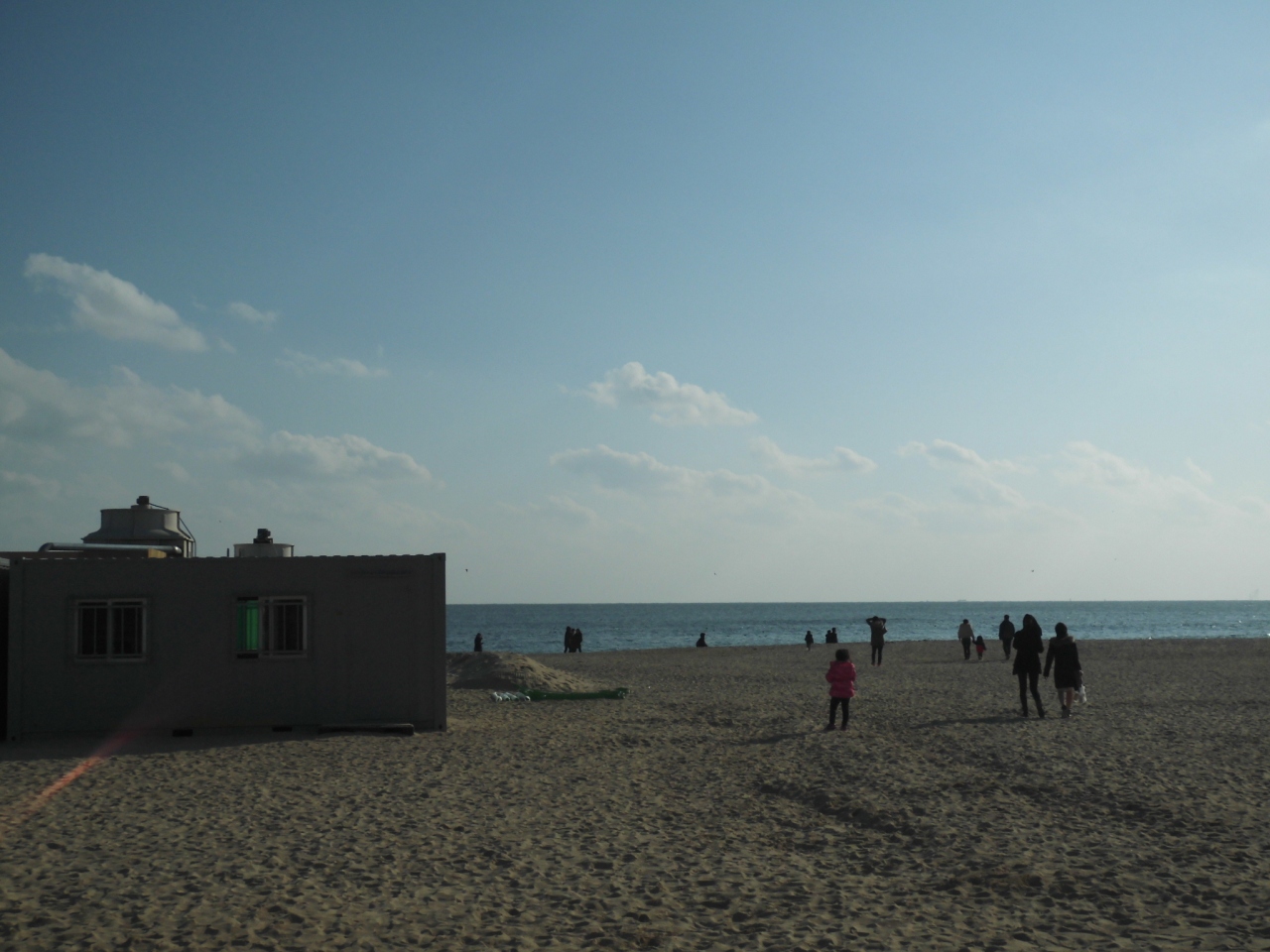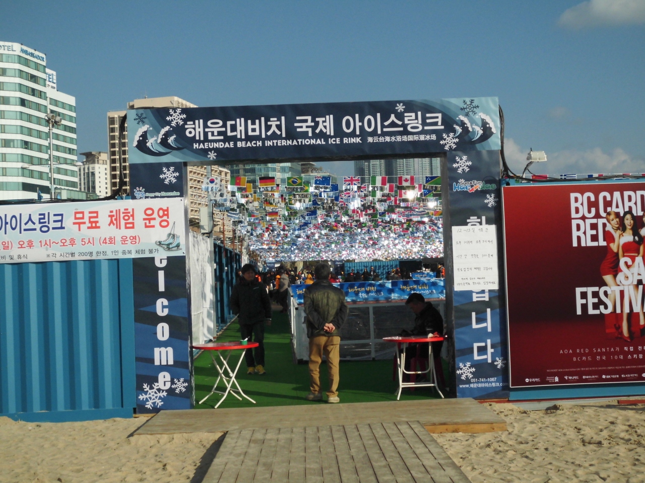 ビーチにアイススケートリンクが作られており、シーズンオフでも楽しめるようになっています。訪ねた12月は真冬の割にポカポカ陽気でリンクの氷が溶け出して水たまりを作っていました。ショップの立ち並ぶ通り沿いからビーチまでは徒歩数分の距離です。