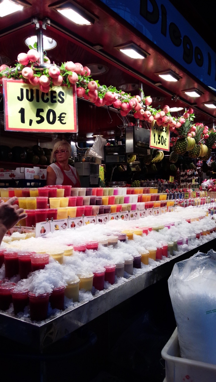 市場入口から楽しい雰囲気でテンション上がります。フルーツジュース片手に色々見るのがおすすめです。奥の方にカウンターで座って食べられるお店がありそこで食べたタコマリネのようなものが絶品でした。あんなにやわらかいタコは生れてはじめてでした。