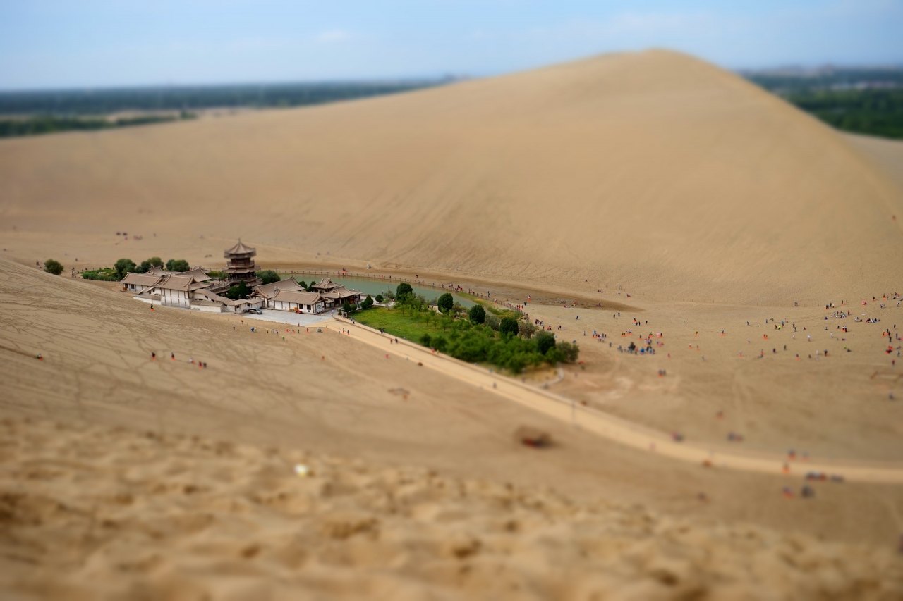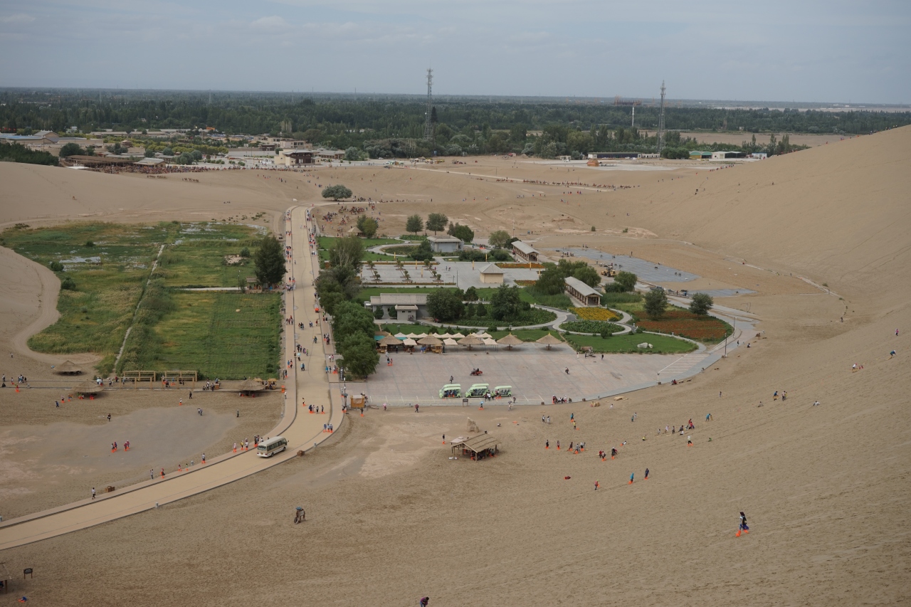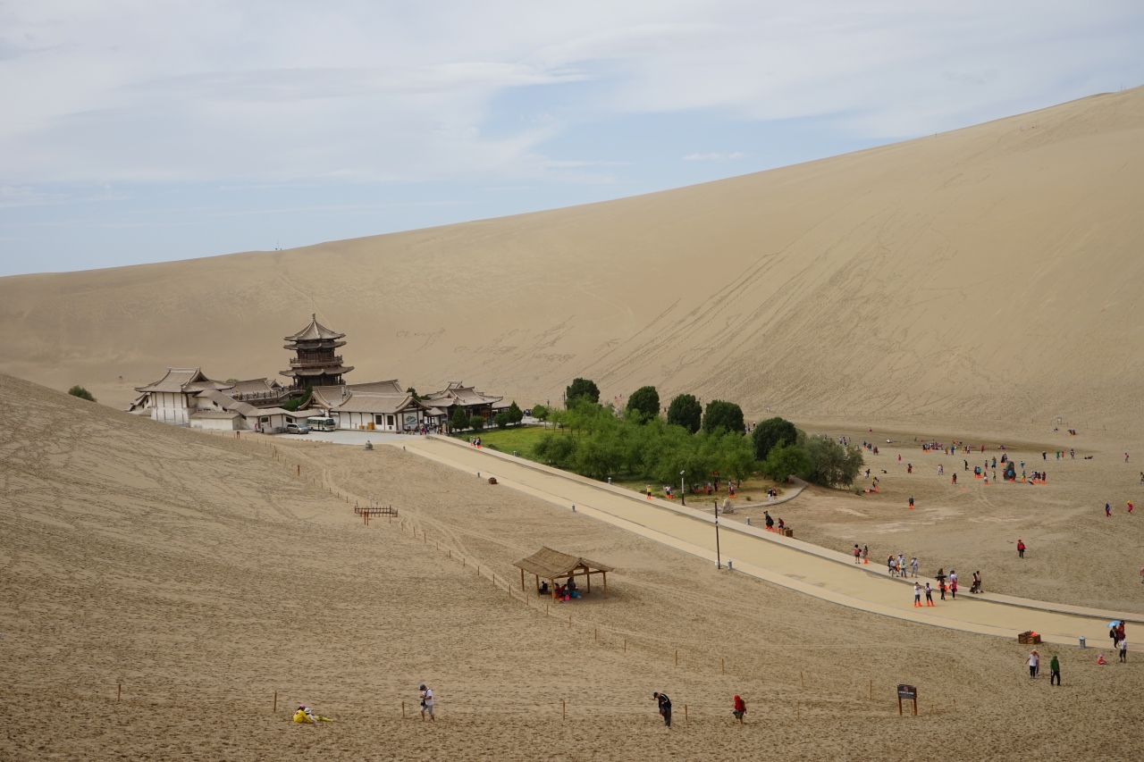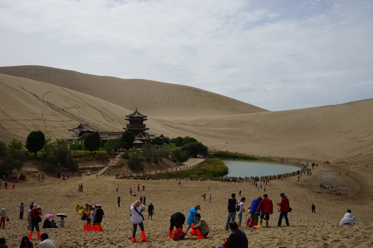 鳴沙山のふもとに月牙泉という泉があります。漢の時代より1000年以上も枯れることなく豊かな水を湛えています。