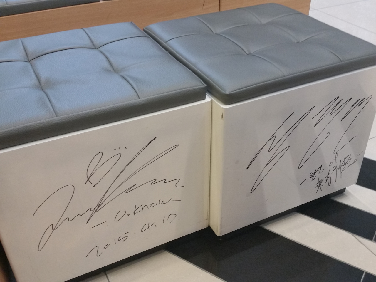 カフェの椅子やテーブルなど、いたるとこにサインが書かれており、好きなアーティストのサインを探すのも楽しみの一つになると思います。