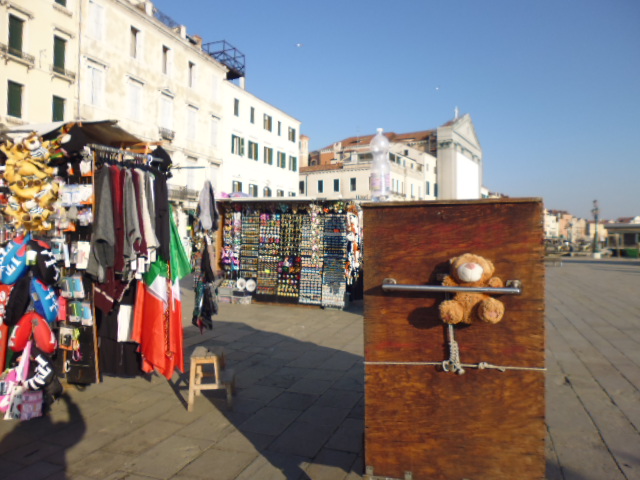 サンマルコ広場の海側にあるのがここサンマルコ小広場です。ゴンドラの停泊所になっている港がありその前には、お土産の店がいくつも出ています。