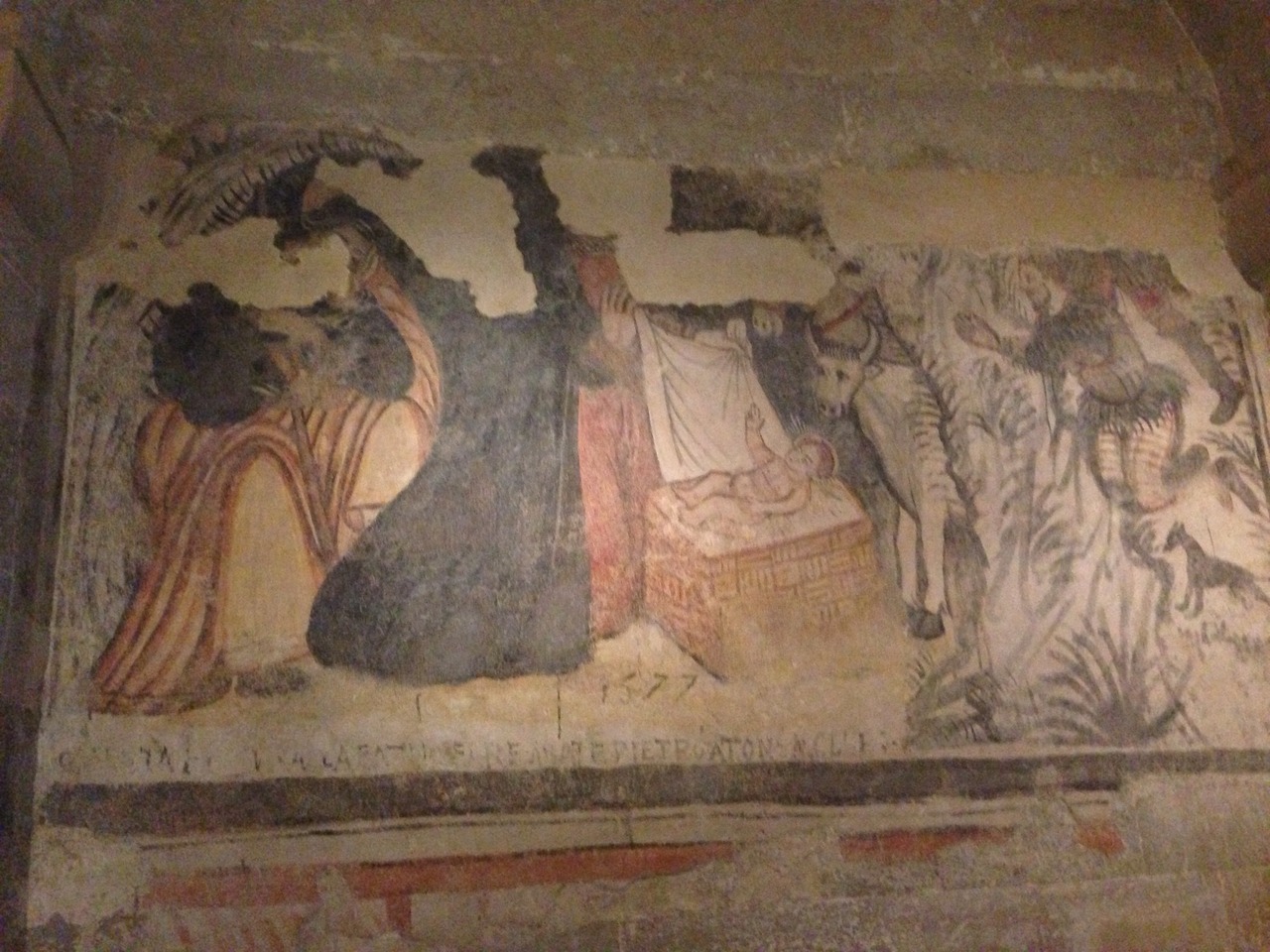 地下にはかつての教会だった空間が広がります。みごとな柱や神秘的な壁画がみられます。