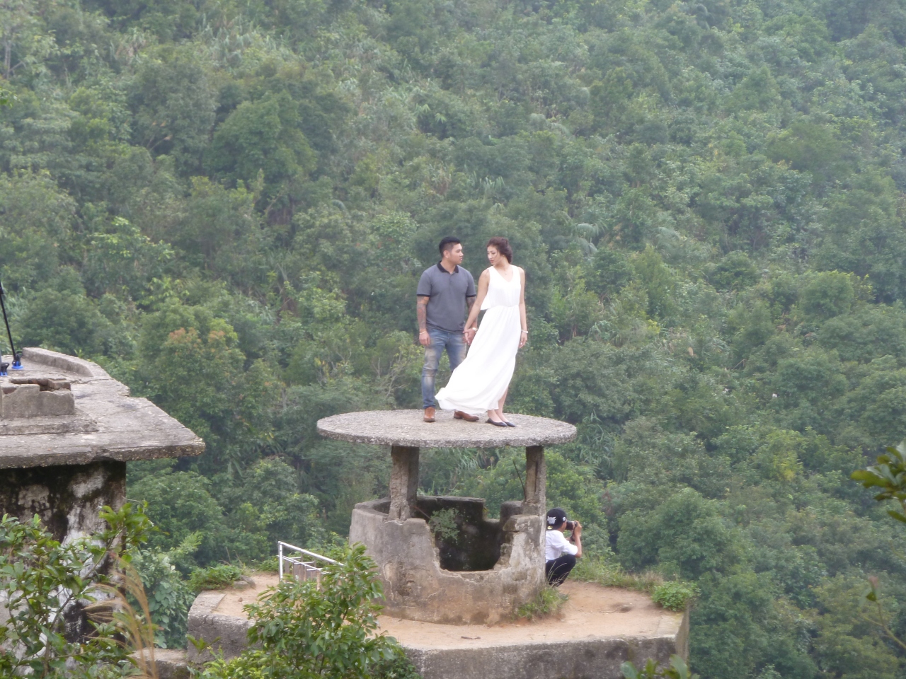 フエからダナンヘ向かう途中に位置するハイバァン峠。峠を越えると天候が一気に変わります。頂上からの眺めは絶景!絶景を背景にメモリアル写真を撮る方が。面白いシーンでした。訪れた日は曇り。晴れていたらダナンの町が眼下に見えたのでは?途中、牛のお散歩に出会ったりで楽しいドライブでした