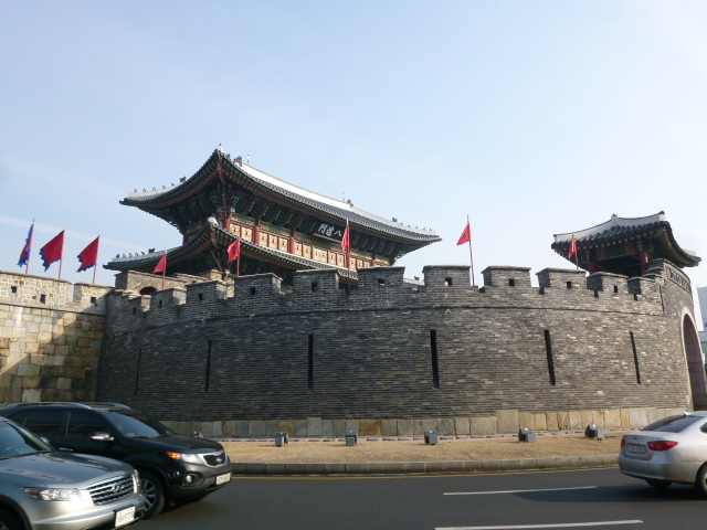 ソウルから地下鉄で水原駅へ、そして八達門へ行くのですが、歩いてはちょっと遠いし、バスは乗り方わからないし、思い切ってタクシーに乗車です。安いし良いかぁー10分ぐらいで到着です。八達門は「水原華城」の入口のようです。ちょっと変わった形をしていますね。水原駅で入手した観光図を見ながらスタートです。まずは中心付近にある「華城行宮」に行きますが、他にも「華虹門」、そこを流れる水原川は風情がありますよ。また、周遊する華城列車もあります。楽しんでくださいね。