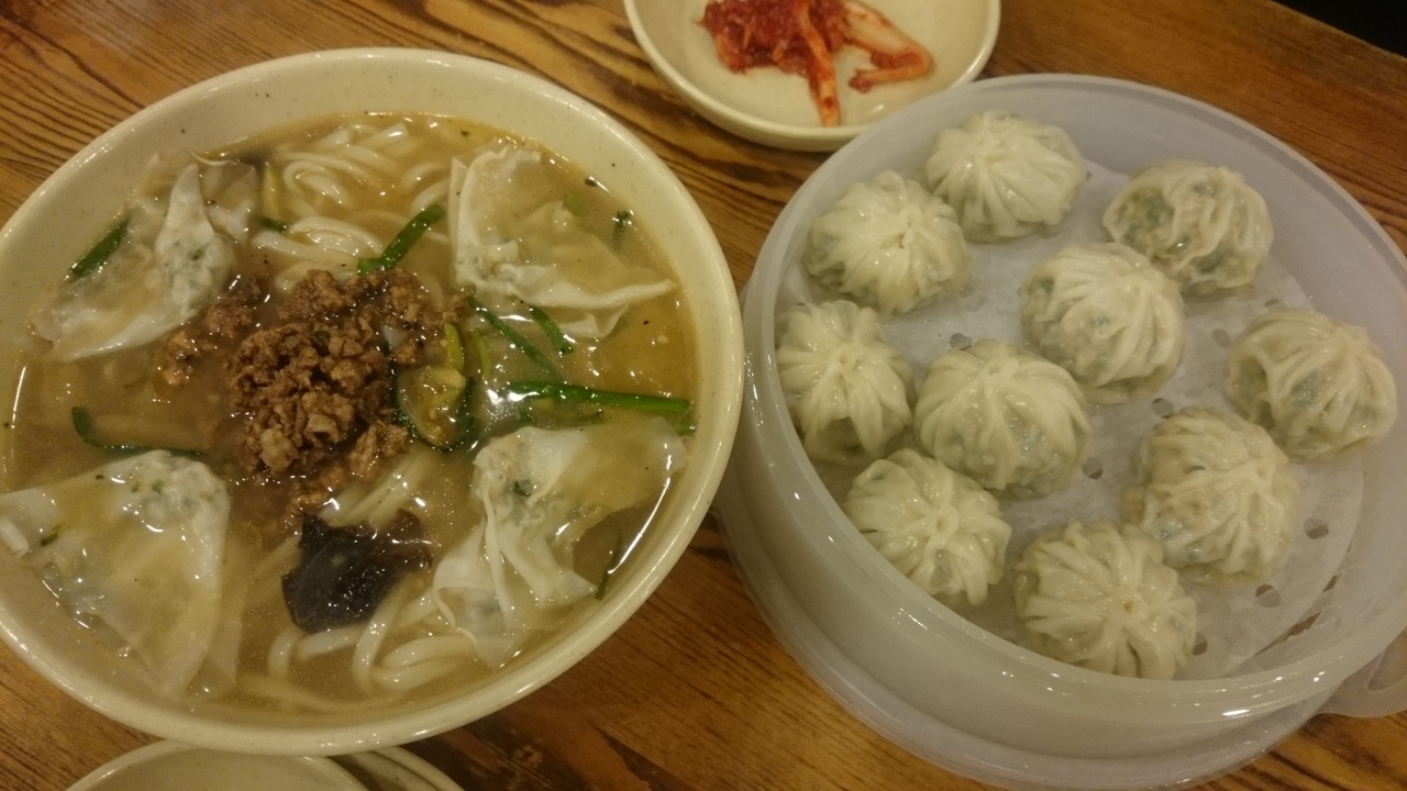カルグクス(平たいうどん)と餃子が有名なお店です。