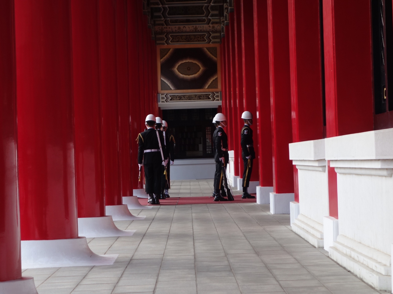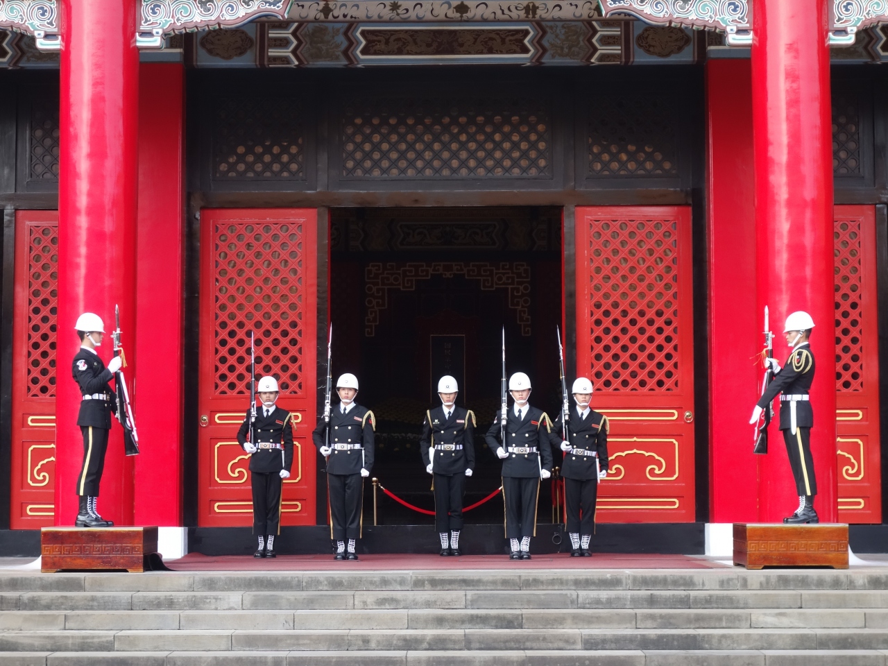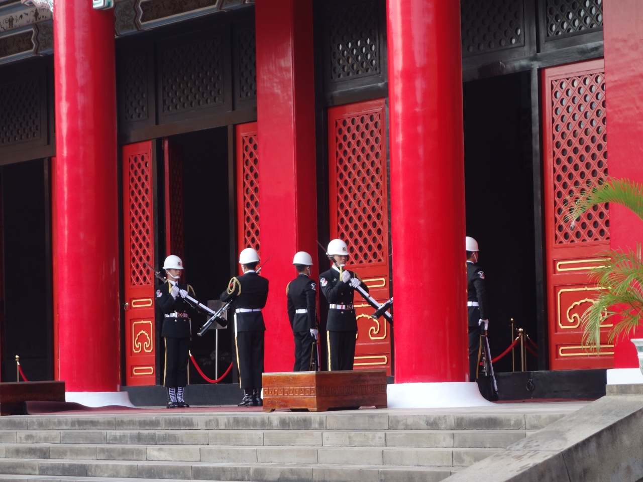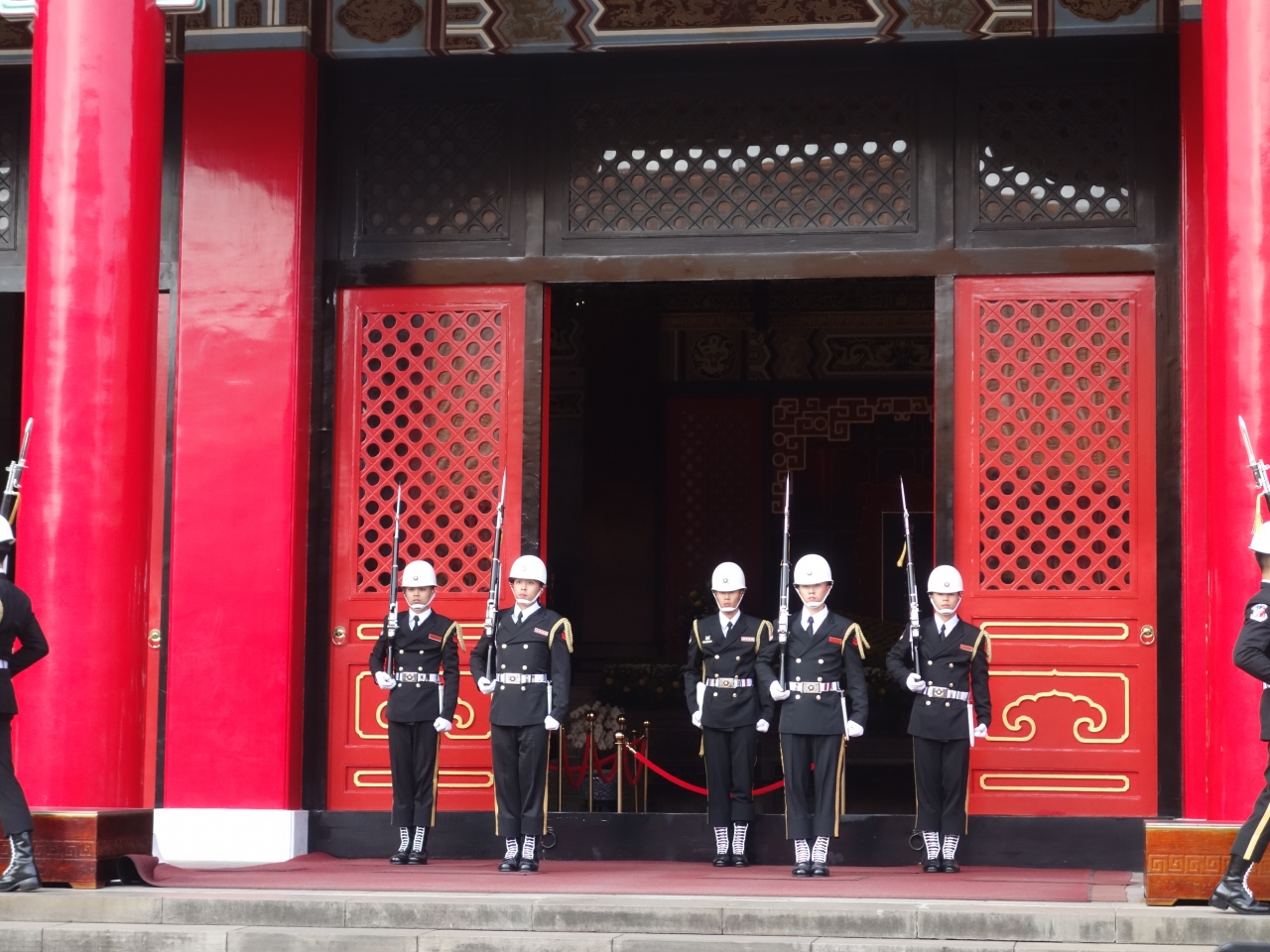 バッキンガム宮殿やギリシャの大統領府の衛兵交代式もそうですが,各地にそれぞれの歴史を反映した衛兵交代式があります。台湾のそれがここに典型的に現れているのでしょう。(中正紀念堂でも衛兵交代式があります。)日本ではやっていないのでしょうか。歴史ですね。
