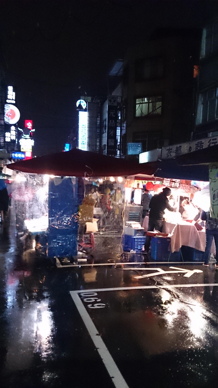 地下鉄松山新店線の終点の松山駅を地上に出て徒歩2分ぐらいで夜市の入口に到着できます。すぐ横に大きな廟、松山慈祐宮があるのでわかり易いです。200mぐらいのストリート自体が夜市になっており、通りの真ん中にびっちりと露店が立ち並び、道路の両サイドも店先がお店になっており、その大半が飲食物を提供するお店です。人気店とそうでない店は客の入りや行列で非常にわかり易いので一つの目安になります。自分が訪問したときは雨で寒い日でしたが、地元の方、外国人観光客が入り乱れて、かなりの人出でした。