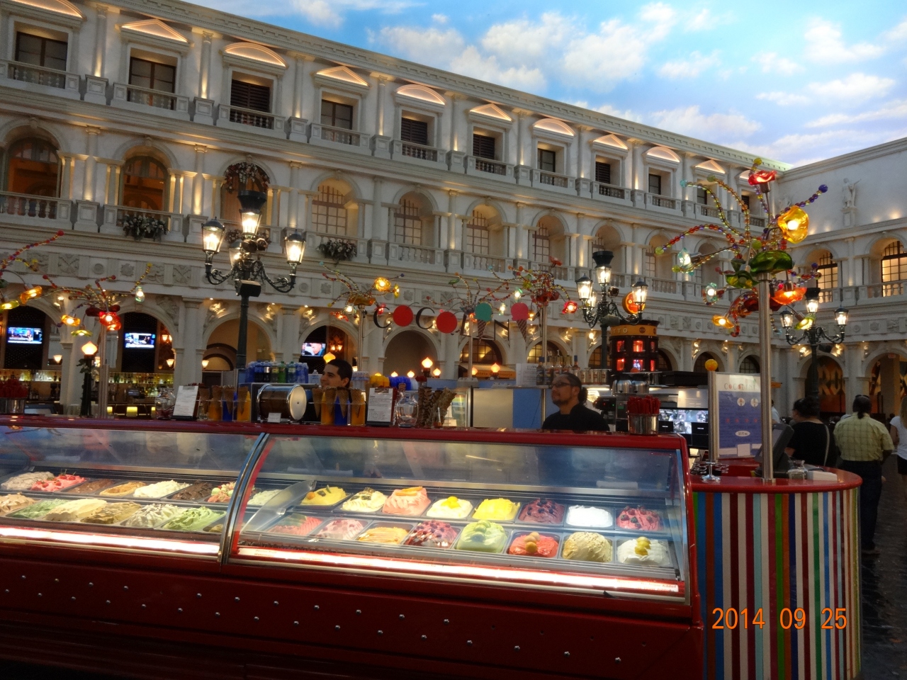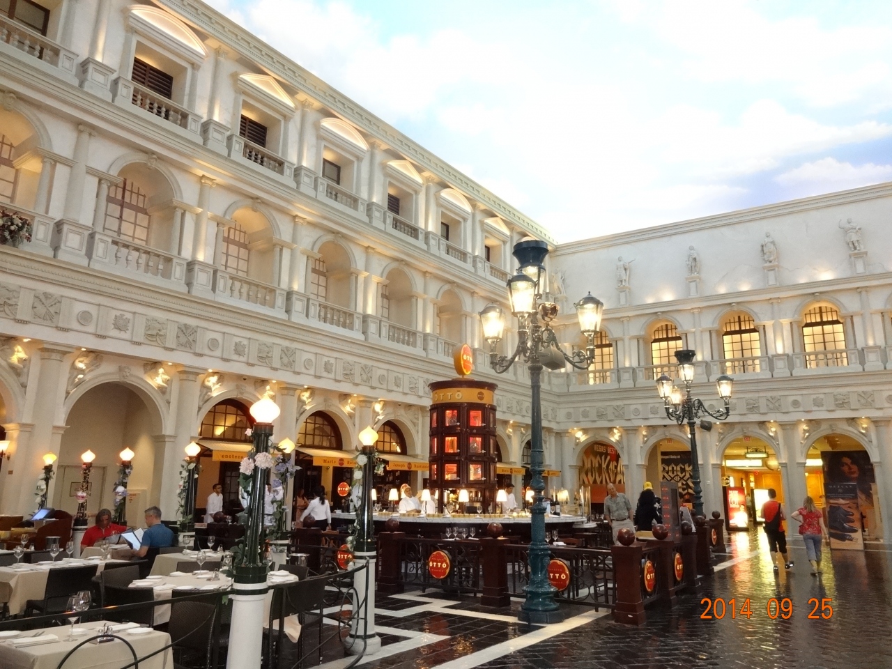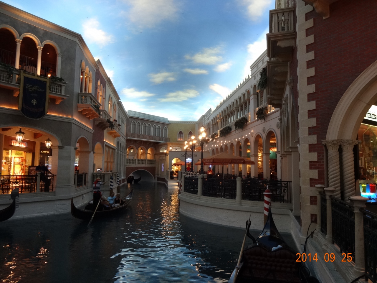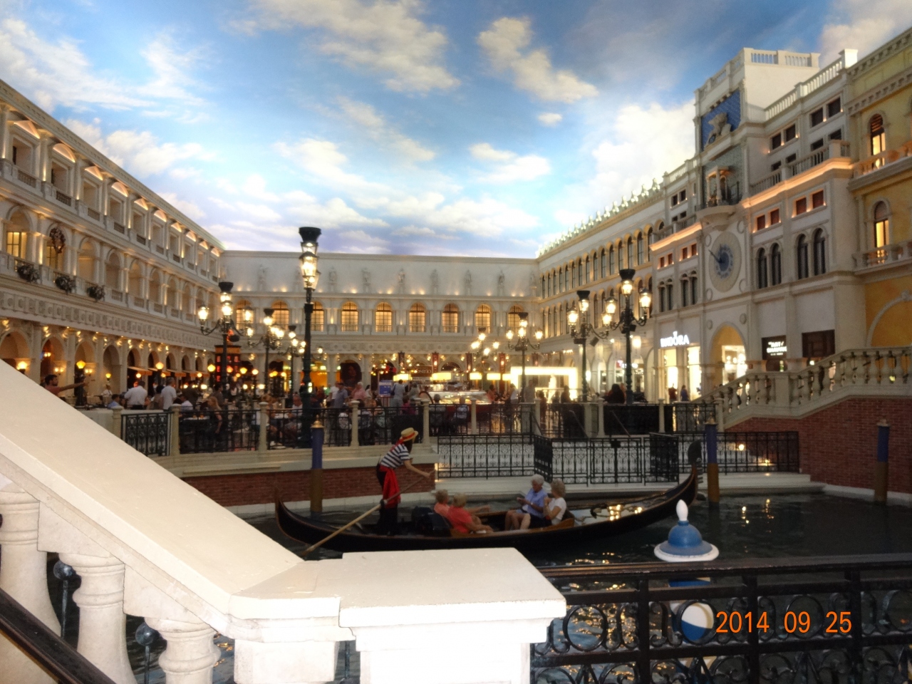 ベネチアンホテルに隣接するショッピングモールです。水の都ベニスの街並みを再現した造りで、運河やサンマルコ広場もあります。運河では有料ですがゴンドラに乗ることも出来ます。お店は運河に沿ってあり、高級品からカジュアルな物まで多種多様に渡り揃っています。また、サンマルコ広場にはレストランや美味しそうなジェラードのお店があり、無料のショーも行っています。天井に広がる青空の中、ゴンドラから聞こえるカンツォーネの歌声を耳に散策していると、まるでベニスの街を歩いているような気分になれる場所でした。
