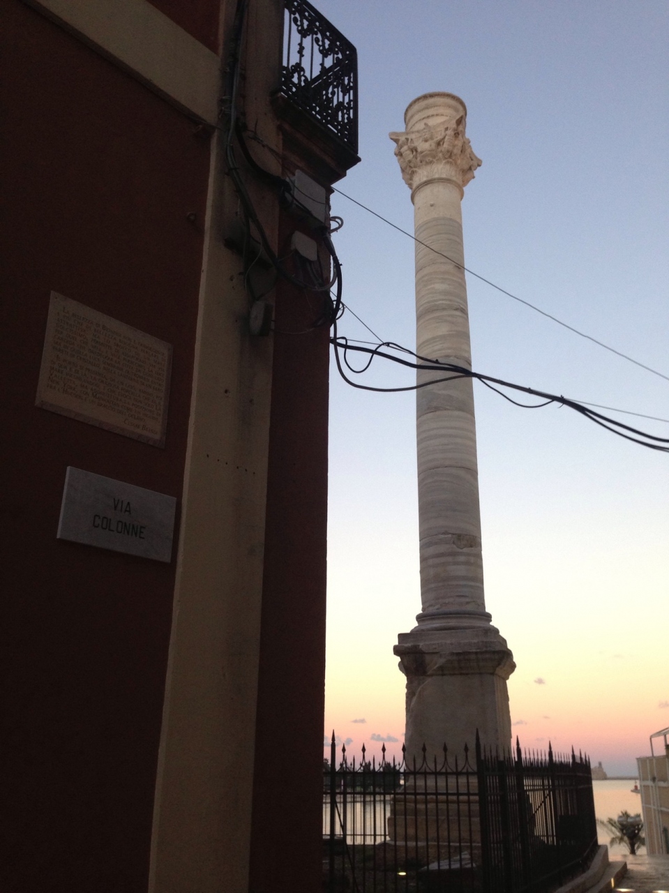 海をのぞむこの門の下には、プロムナードが整備され、時おりブリンディシ空港に発着する飛行機が見えます。