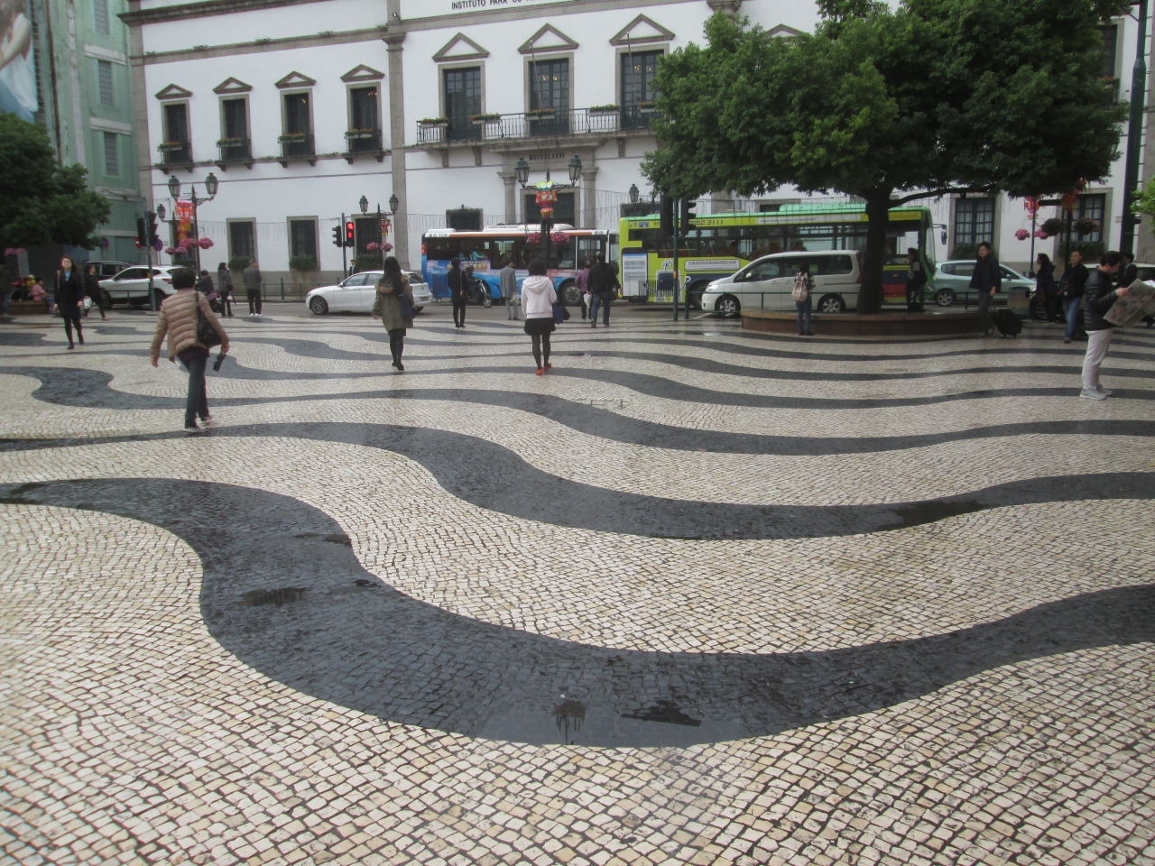 1年半ぶりにマカオに訪問しました。マカオの観光でもっとも定番であるエリアで、いつ来ても観光客や通行人がいます。各種ガイドブックに掲載されているため、日本人も見かけました。広場の足元の独特な模様は変わらず、久しぶりに見て懐かしさを感じました。