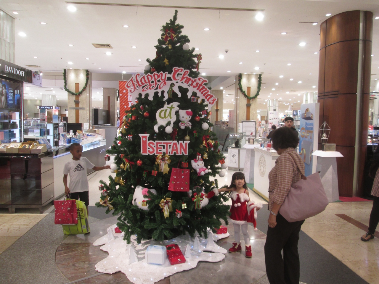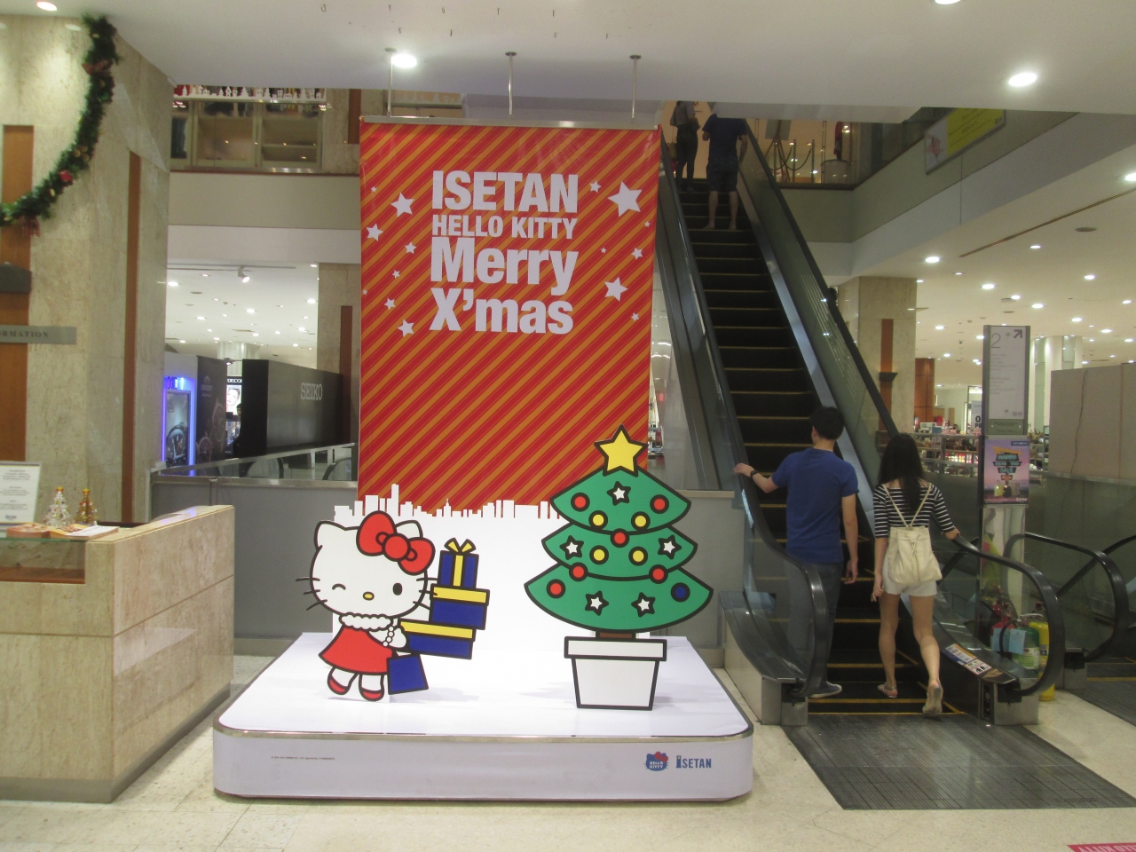 クリスマスの時期に伊勢丹に訪問しました。エントランスにはクリスマスの飾りがあり、店内にはクリスマスツリーがありました。今回、併設されているセントラルワールドはミッキーマウスでしたが、伊勢丹はキティーのようです。