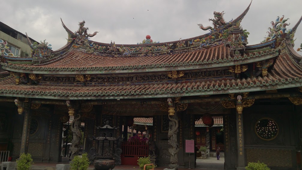 台北市孔子廟とは道路を挟んで隣り合っています。アクセスは地下鉄淡水信義線の圓山駅で下車して西に10分ぐらい行くとあります。ここと隣の孔子廟は有名スポットなので、駅を降りると看板も建っています。廟に入ると複数の建物があって、これらを全てたすと結構な広さになります。メインの廟は屋根に色彩鮮やかな細かな装飾を施した龍が載っており、それ以外の屋根、柱、壁などもこれでもかというぐらいの装飾が派手に施されています。訪問したのが平日の午前中でしたが意外なほど参拝客は少なくひっそりとしていました。