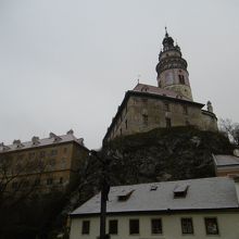 「城の塔 (城の博物館)」はチェスキークルムロフ城にあるカラフルで一番高い建物。どんより空模様でその美しさがはっきりしないがかわいらしい。城の塔から街を見下ろしたいものだったが、ナンバーワンの絶景スポットに入場できず。