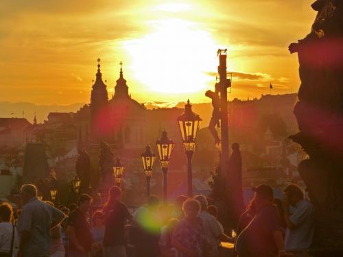 プラハの街の1番の人気スポットといえば『カレル橋』!ちょうど夕日の沈む時間帯に行ってみると、橋の上は満員電車のごとく混み混み。ゆっくり写真を撮るのも難しい状況ではありましたが、ここから見る夕日の美しさは、本当に息を呑む程でした。せっかくなので、朝も散策してみましたが、やはり夕日の時間の方が素晴らしかったです。