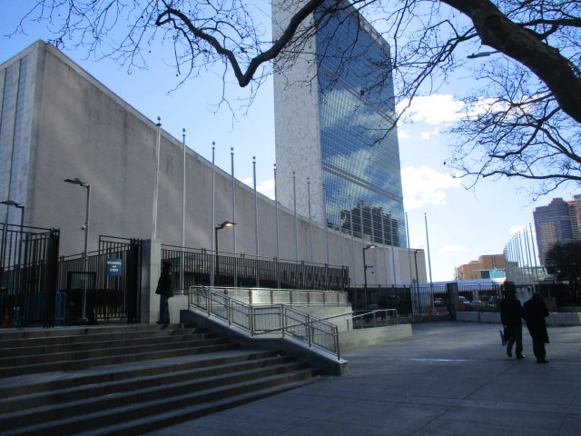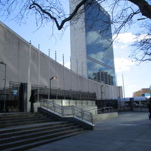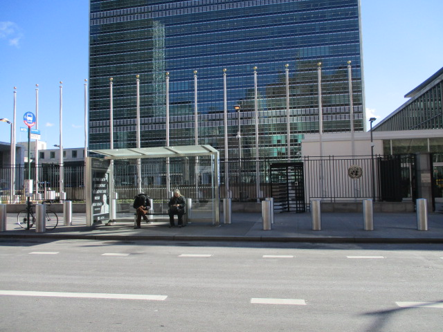 現地ツアーの車で、「ここが国連本部です」と。あれ?イメージと違う。そうなんです、国旗が見えません。大きなビルと林立するポールだけ。旗をたてるポールが林立するのは昔、京都の国際展示場で見たっけ・・思い出しました。国連本部は休みの日は国旗がないから、気をつけて、のアドバイス。月曜日が休日なんでしょうか?行く時は要注意です。