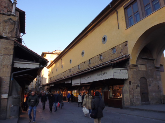 フィレンツェといえばのヴェッキオ橋は多くの貴金属屋さんなどでにぎわっていますが、その橋の中ほどにあるのがここヴァザーリの回廊です。